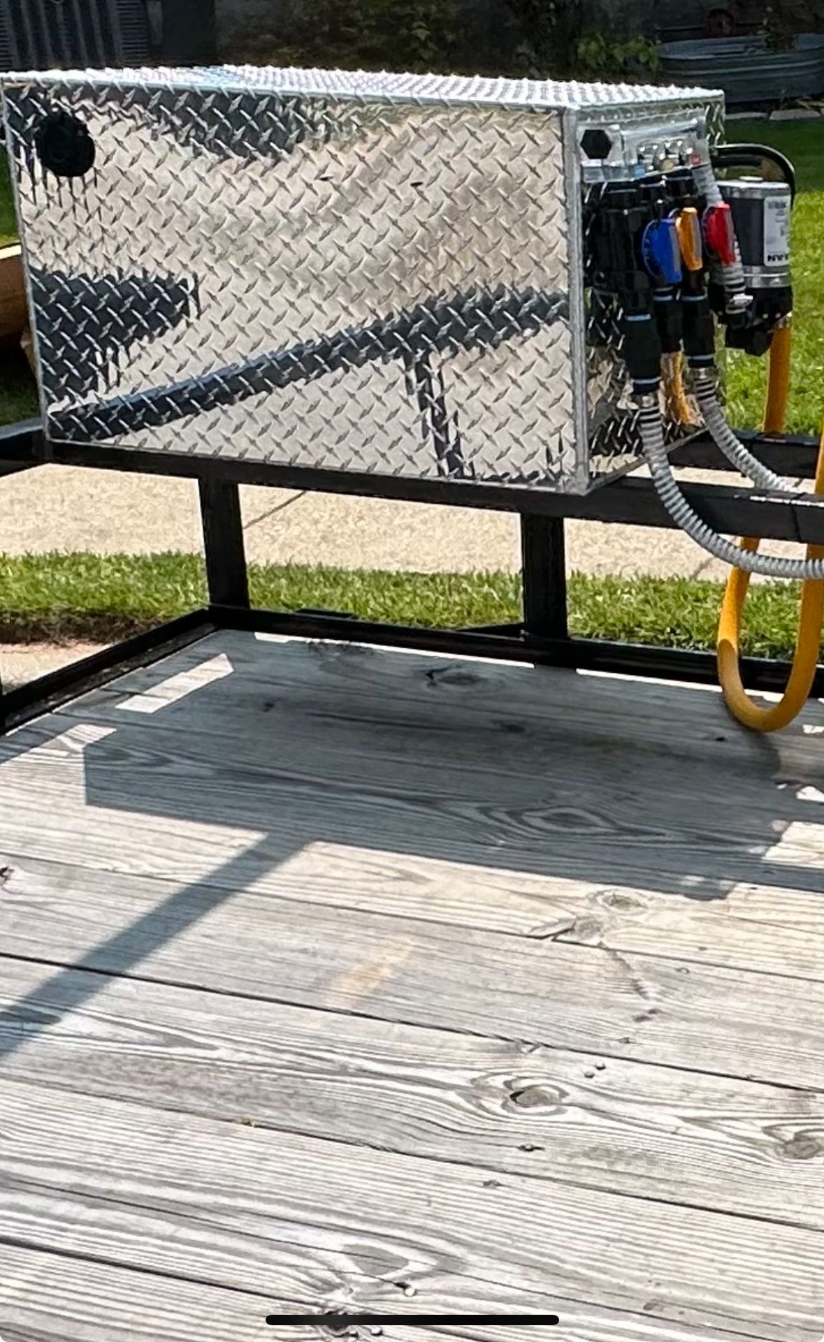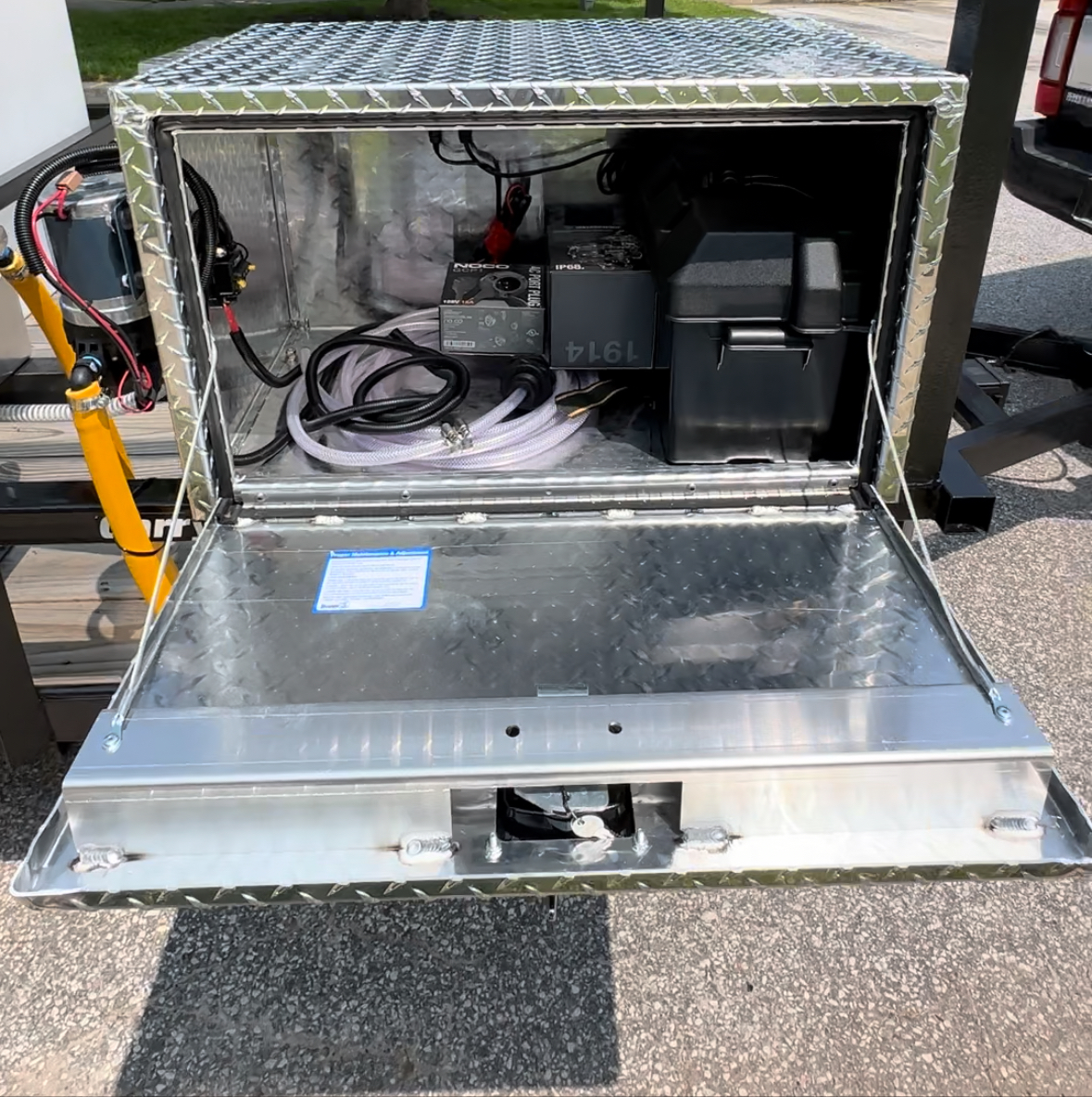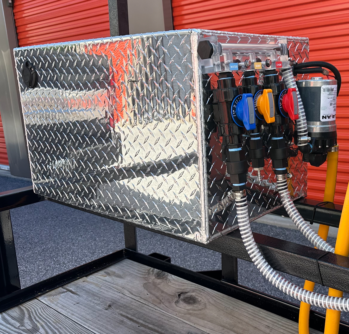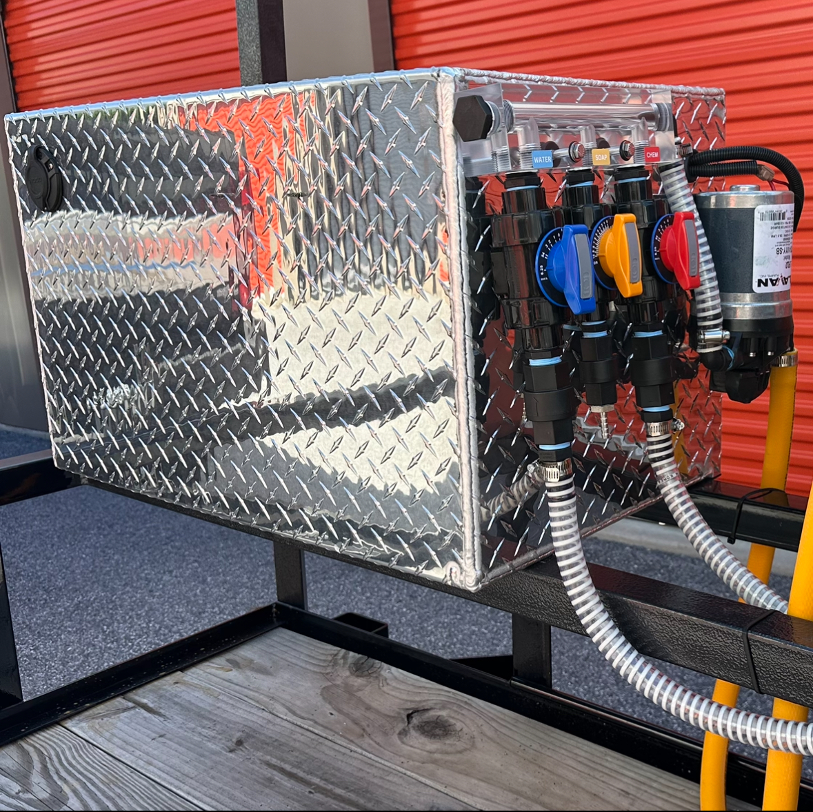 This “PLUG-AND-PLAY” softwash 12v box comes with everything you need, just drop your hoses in tanks, and turn it on to start using!