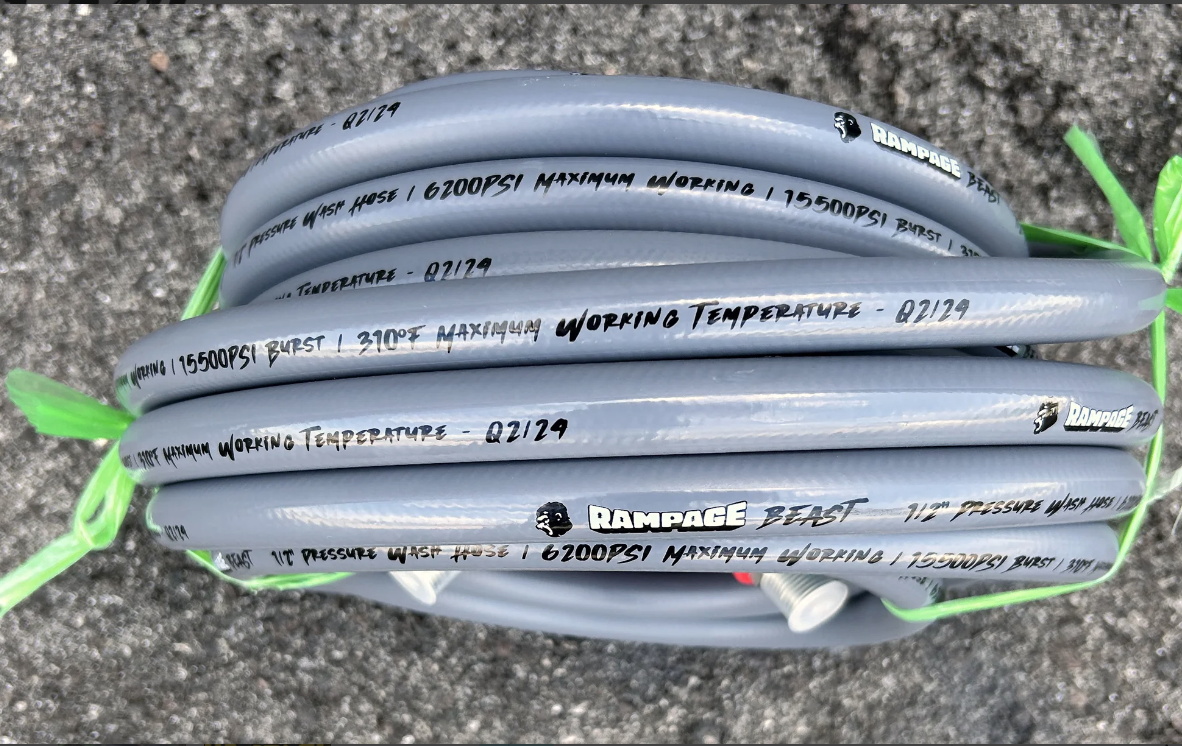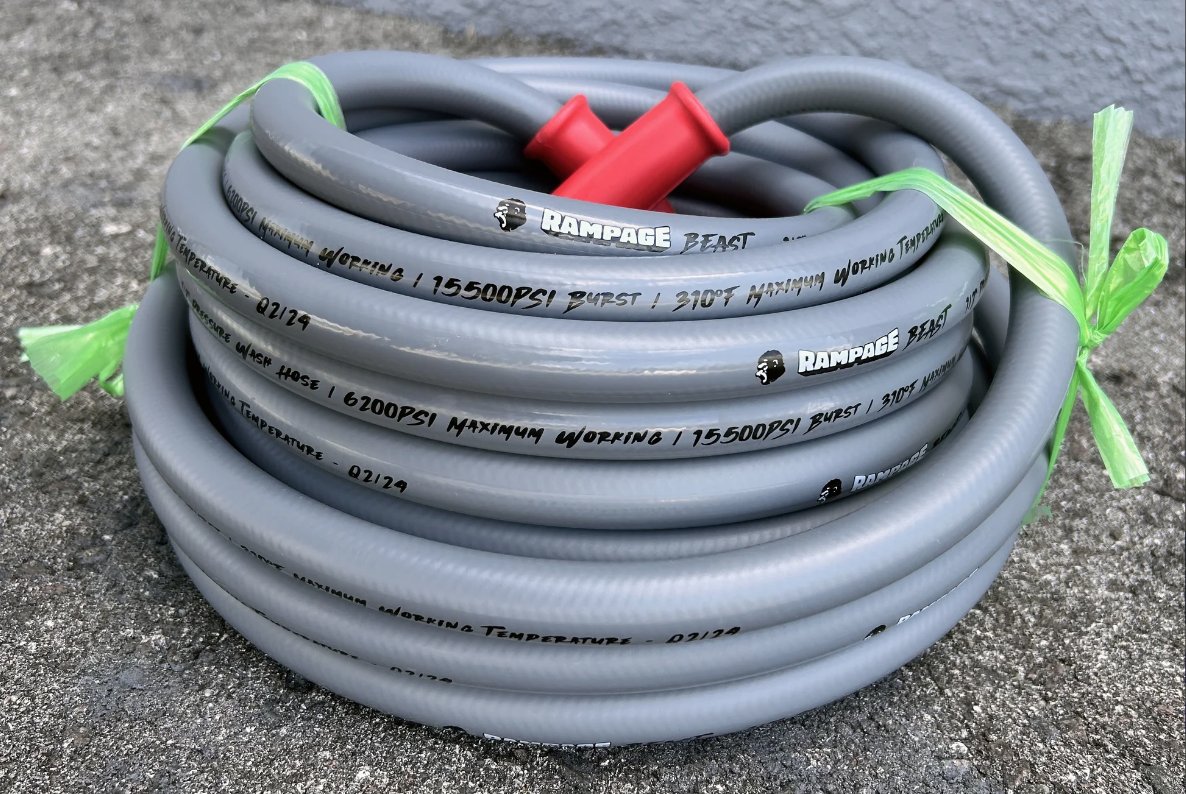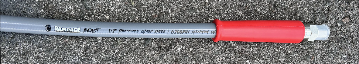 RAMPAGE BEAST 100′ (feet) smooth gray 1/2″, double-wire, 6200 PSI high-pressure hose, hot water hose